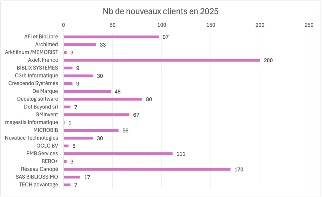 Voir le tableau des ventes 2025 de progiciels métier pour bibliothèque (PDF, 2 p.).